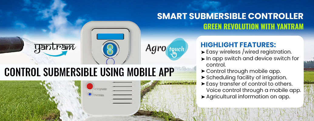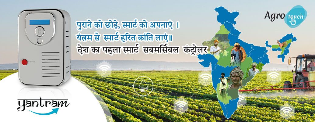 ऍग्री यंत्रम स्मार्ट सबमर्सिबल कंट्रोलर लगवाओगे तभी तो स्मार्ट किसान कहलाओगे। यंत्रम ऍग्रो टच लगबाओ और ऍग्री यंत्रम मोबाइल एप डाउनलोड करो। कहीं से देखो सबमर्सिबल पंप और ट्यूबवेल और कहीं से बंद व चालू करो।